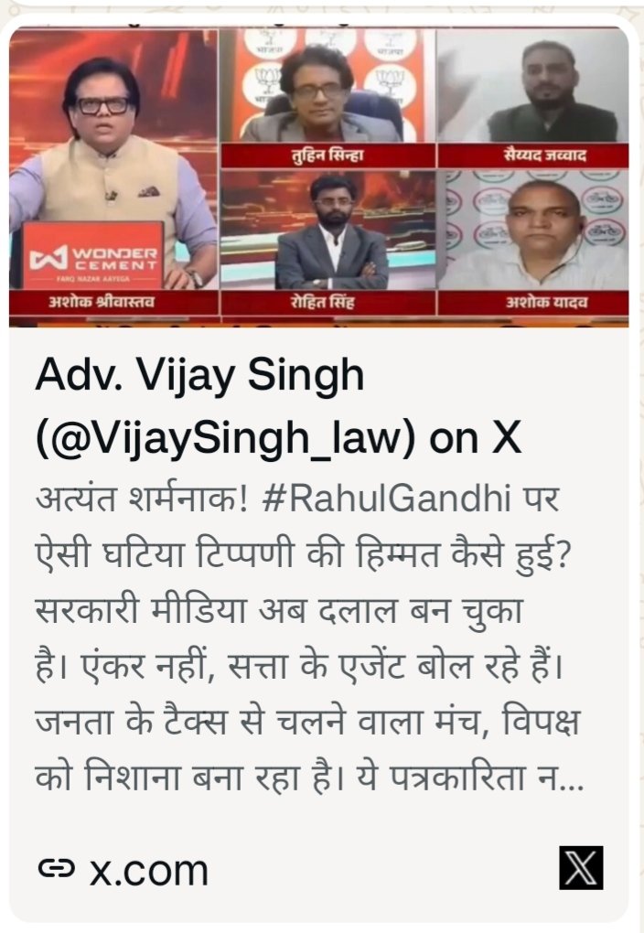 सोशल मीडिया पर वायरल क्लिप के मुताबिक, एंकर ने राहुल गांधी को विनायक दामोदर सावरकर की चप्पल के तलवे में चिपकी धूल बताते हुए विवादित शब्दों का इस्तेमाल किया, जिसके बाद मामला तूल पकड़ गया। इस बयान को लेकर राजनीतिक और मीडिया हलकों में तीखी प्रतिक्रिया देखने को मिल रही है।