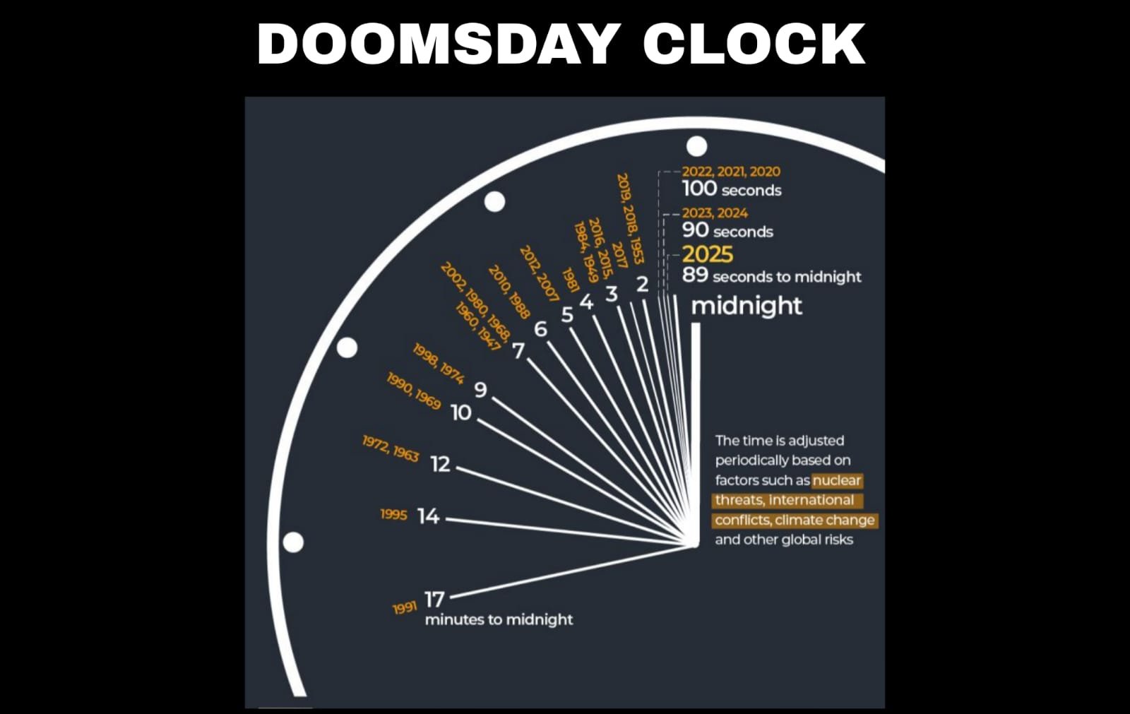 डूम्सडे क्लॉक बनाने वाले एक्सपर्ट्स के मुताबिक, दुनिया का अंत पहले से कहीं ज़्यादा करीब है।