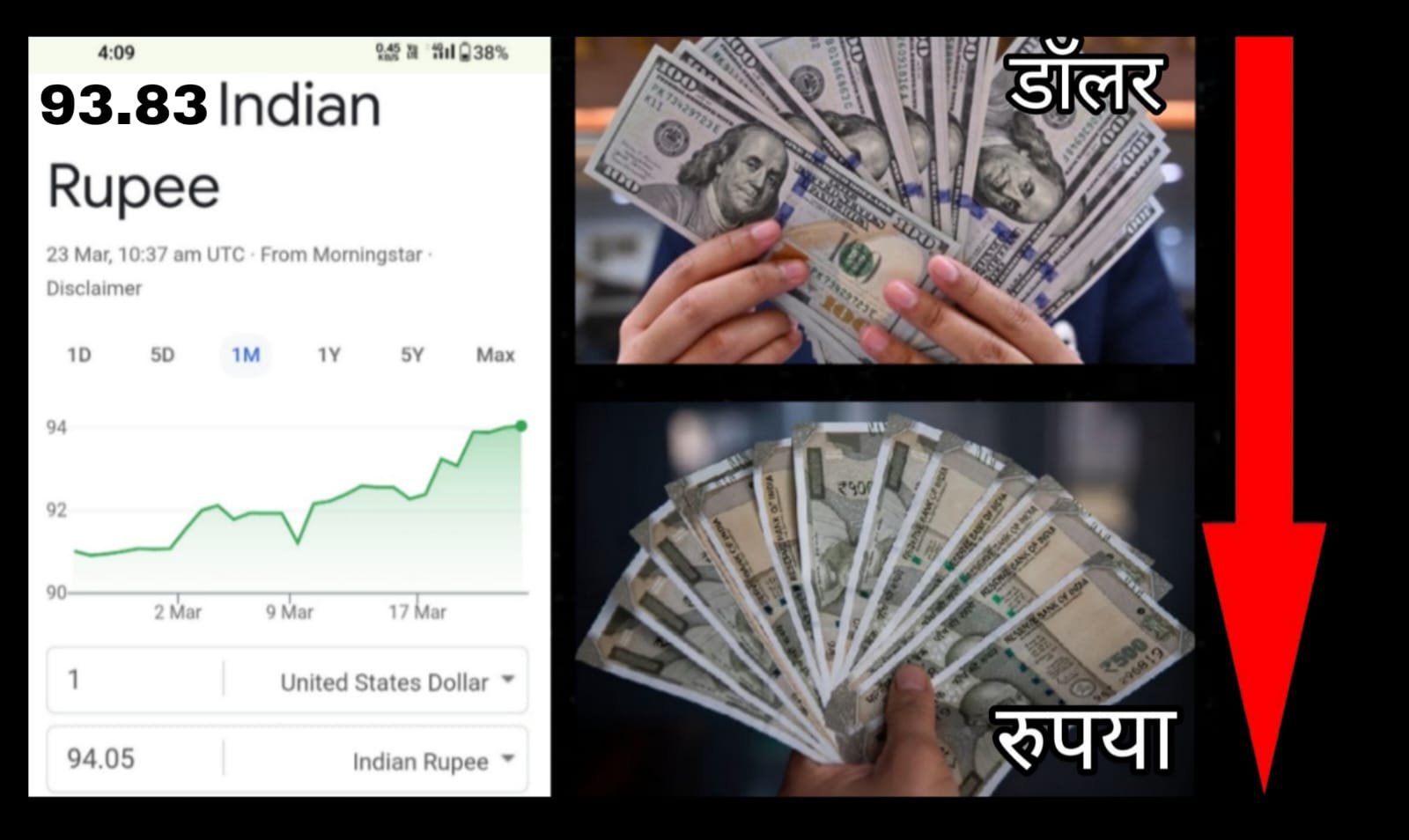 एक डॉलर बराबर 93.83 रुपया