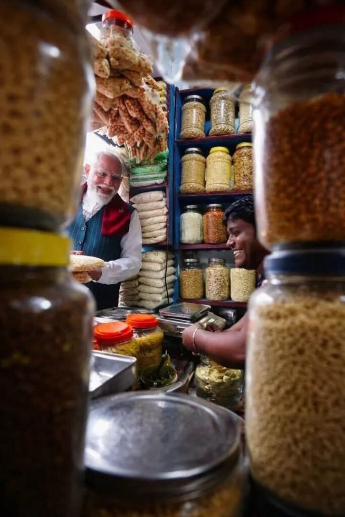 पीएम मोदी ने खुद 10 रुपये की झालमुड़ी खरीदी और स्वाद लिया।