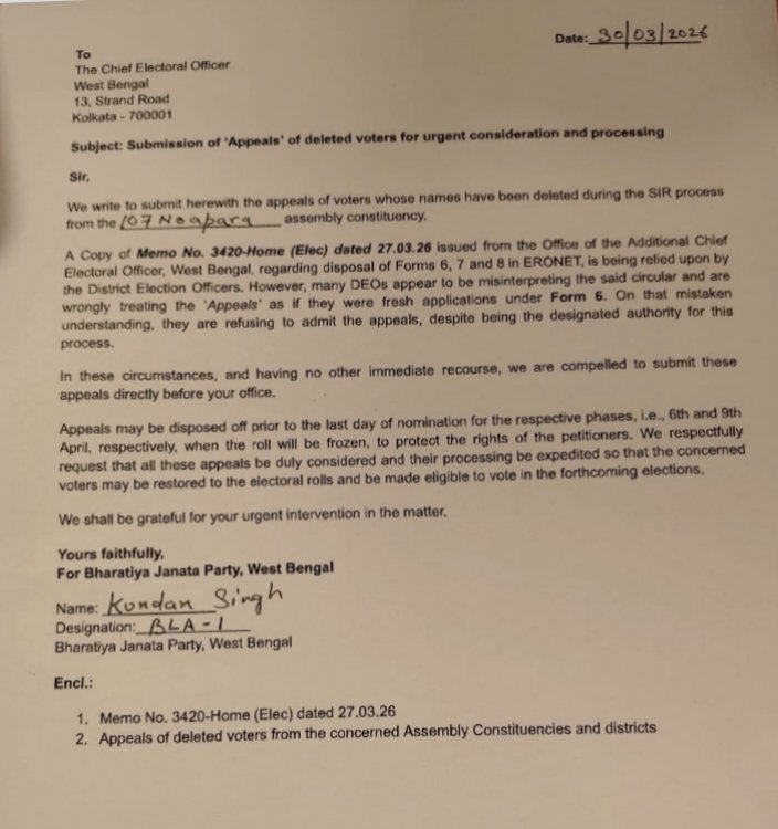 कई जिलों से मिली विश्वसनीय रिपोर्टों का हवाला देते हुए कहा कि संदिग्ध तरीके से बड़ी संख्या में फॉर्म-6 आवेदन जमा किए जा रहे हैं। “ये सामान्य जोड़ नहीं हैं। गंभीर आशंका है कि इनमें से कई उन व्यक्तियों से जुड़े हो सकते हैं जिनका बंगाल से कोई वास्तविक संबंध नहीं है। वे यहां न रहते हैं, न काम करते हैं और न ही राज्य में उनकी कोई हिस्सेदारी है।”